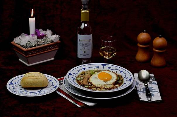 Dagens tallerken, Asiatisk kyllinge- og nudelsuppe med pak choi og spejlæg.