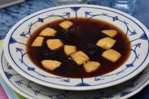 Sødsuppe gammeldags med frugtsaft, svesker og æbler