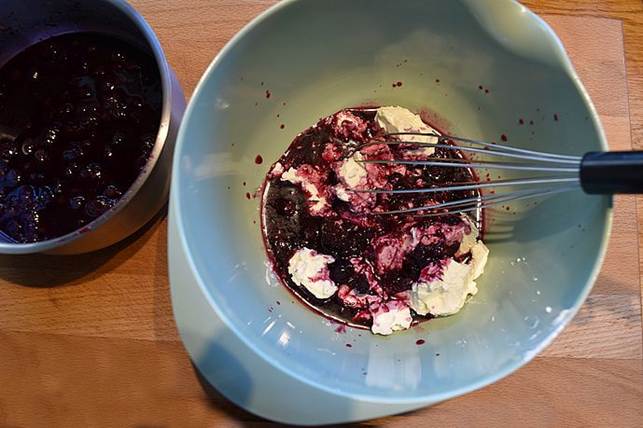 i resten af blåbærcremen.