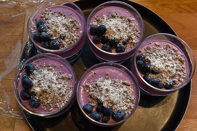 Dagens Dessert, Blåbærfromage med friske bær og revet hvid chokolade