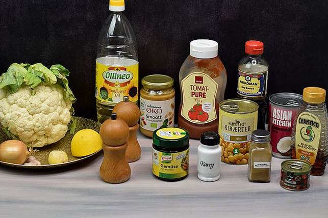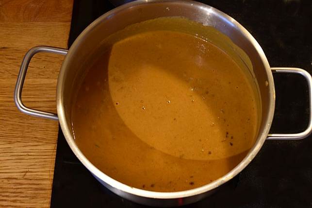 grøntsagsbouillon, kokosmælk og peanutbutter ved.