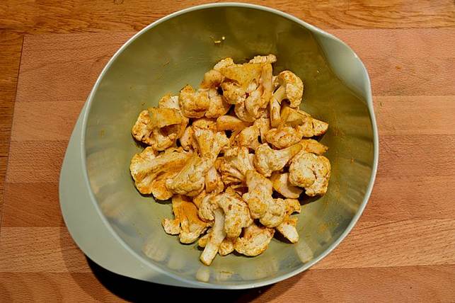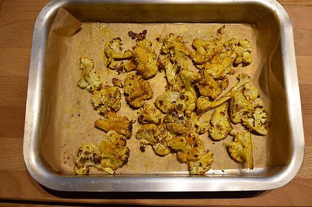 de bagte blomkål i retten og varm curryen igennem ca. 5 min.