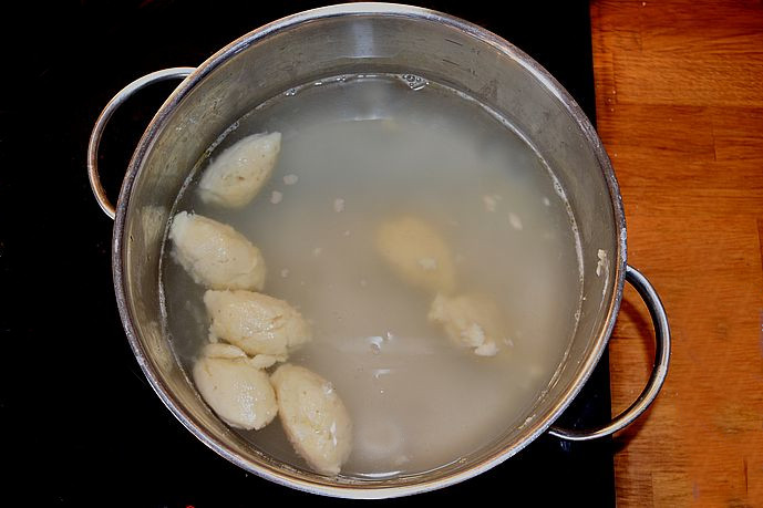 i det kogende let saltet vand, kog bollerne 5 – 10 min. bollerne kommer