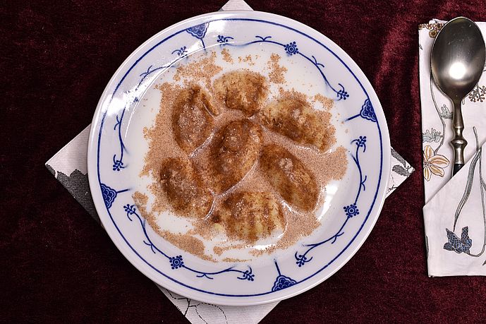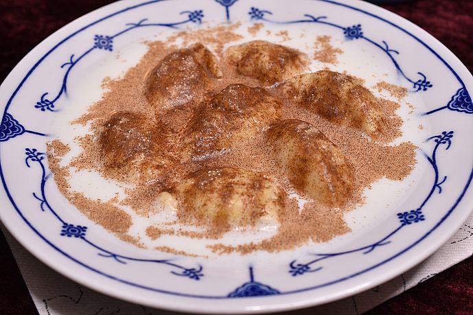 ved servering, fordeles boller i dybe tallerkner og den varme mælk