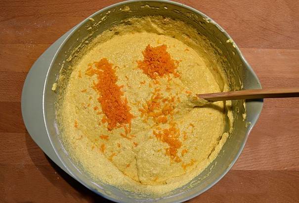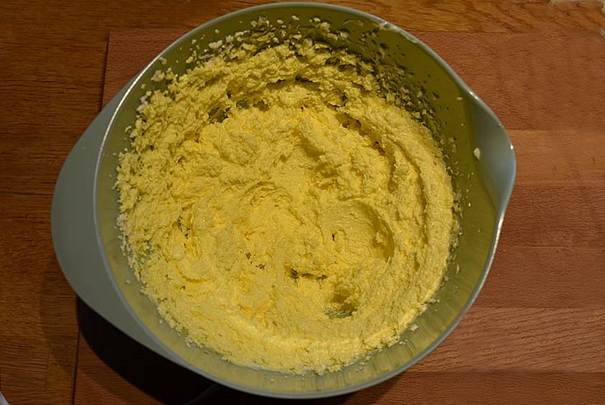 smør-sukkerblandingen. Lidt ad gangen skiftevis med