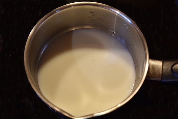Varm fløden op i en lille kasserolle til lige under kogepunktet