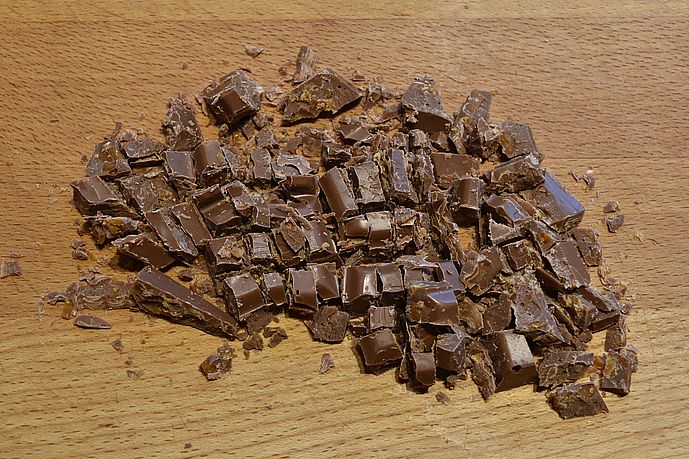 hak chokoladen fint og kom i en skål, hæld fløden over chokoladen.