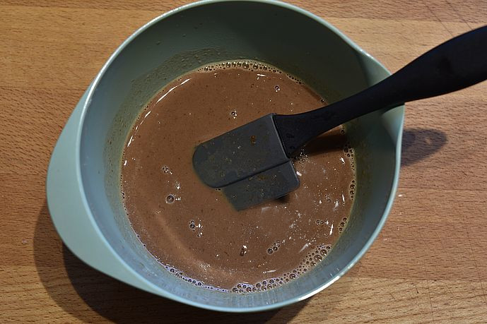 Rør i midten med en lille dejskraber til ganachen har samlet sig, er