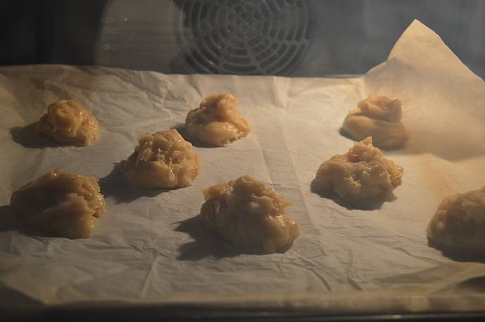 kom dejen i en sprøjtepose uden tylle og sprøjt 6 – 8 boller ud på en