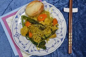 Koreansk hverdagsret med nudler og kimchi