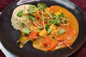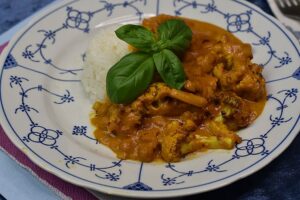 Blomkålscurry med kikærter og ris