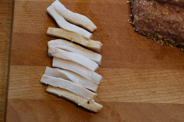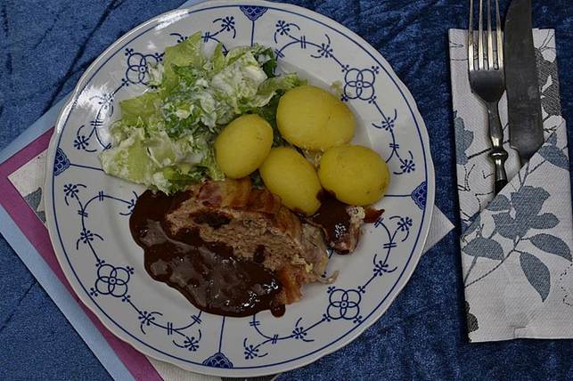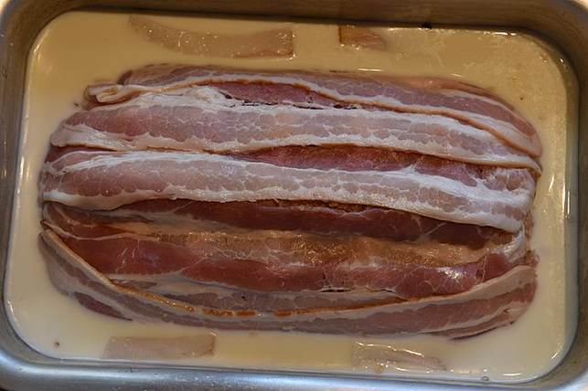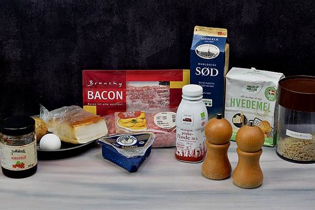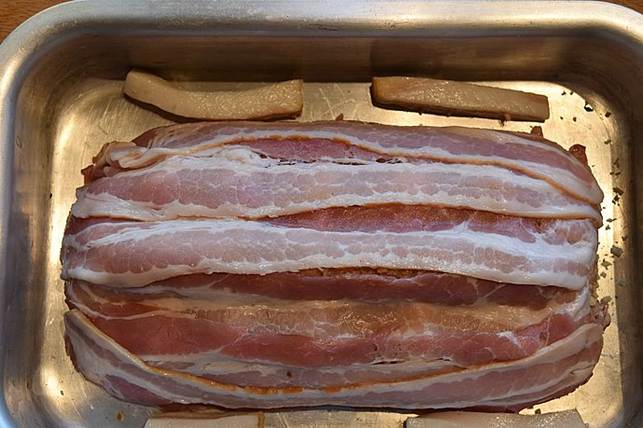 drys evt. med mere rasp på toppen og læg baconskiver hen over