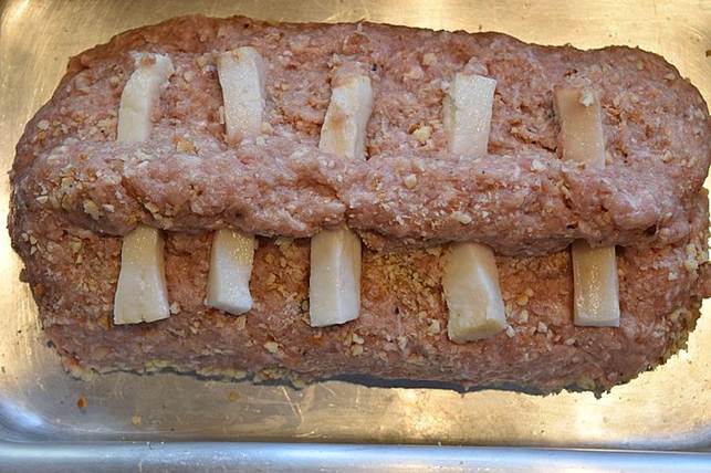 og hvedemel, form farsen til et farsbrød med en lille forhøjning