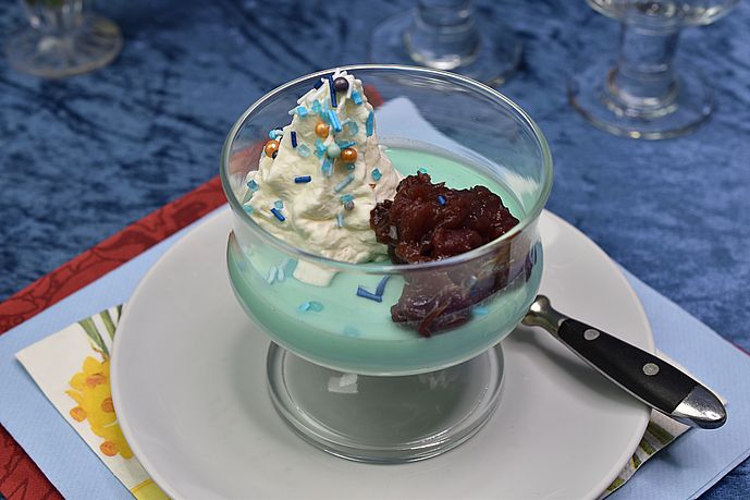 Let Matcha budding med Chantillycreme og azuki bønnepasta