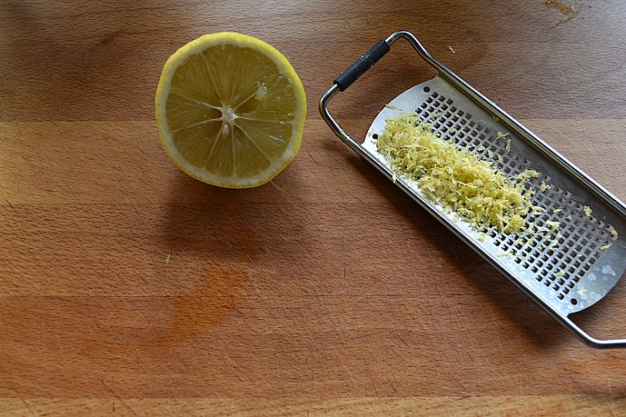 husblassen tage op af vandet, vrides og smeltes i citronsaften