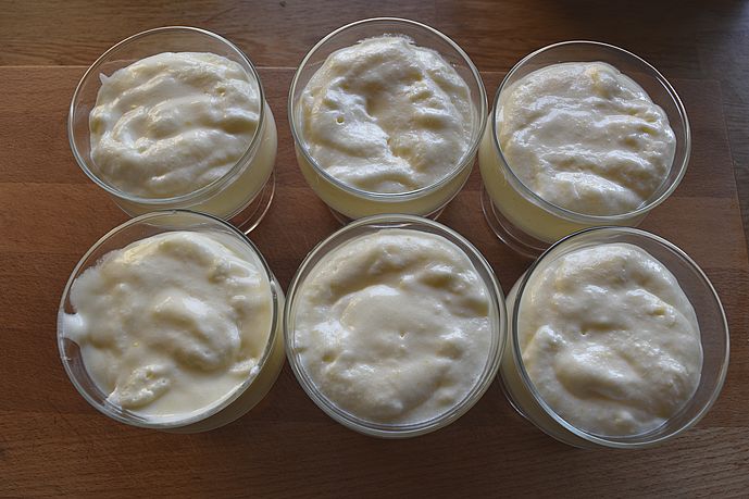 fromagen er ved at sætte sig, hældes den i portionsglas eller i en