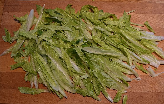 i tynde strimler og pynt brødet med salatstrimlerne, derpå lægges