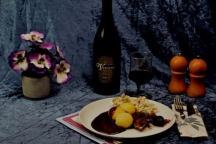 Dagens hovedret, Ovnstegt Rådyrryg med vildtsauce, hvide kartofler, waldorfsalat