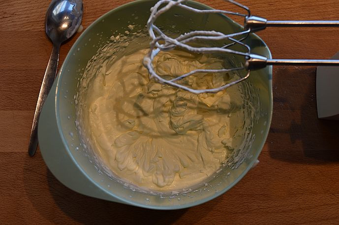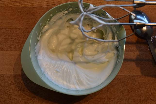 flødeskum, tilsæt flormelis til æggehvider