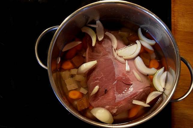 Lad kødet blive lunkent i suppen. Suppen hører ikke med til