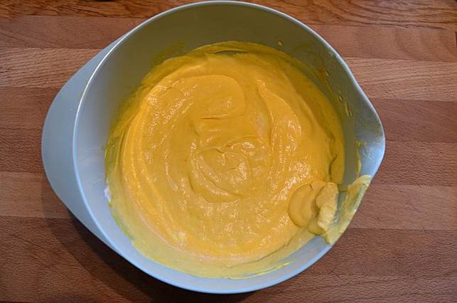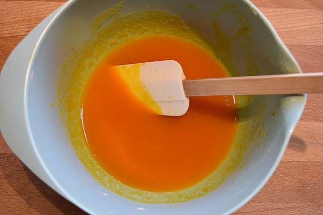 æggeblommerne og eddiken. Mens der blendes, tilsættes olien