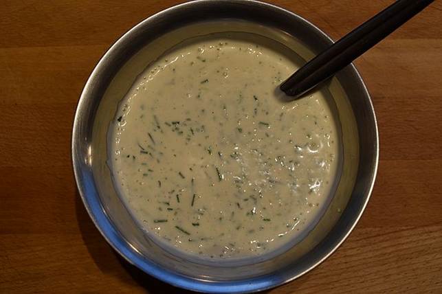 må endelig ikke bliver sødt. Riv peberroden fint og bland den