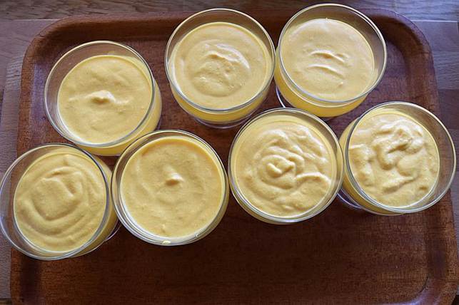 hældes i portionsglas og sættes på køl til de har sat sig ca. ½ – 1 timer