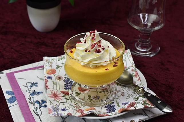 Dagens dessert, Ananas Mousse med flødeskum og frysetørrede hindbær
