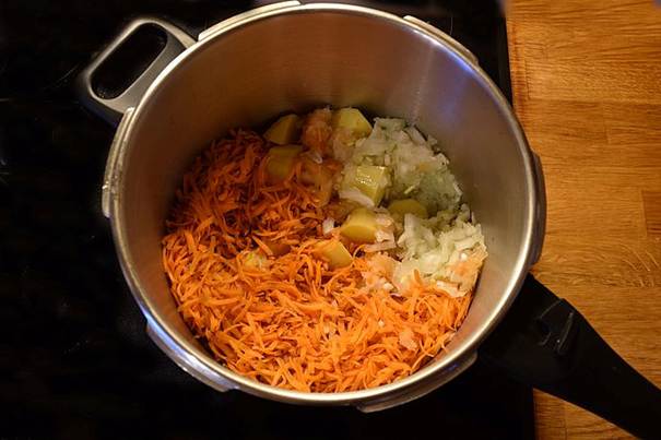 tilsæt dem til trykkogeren sammen med kartoflerne.