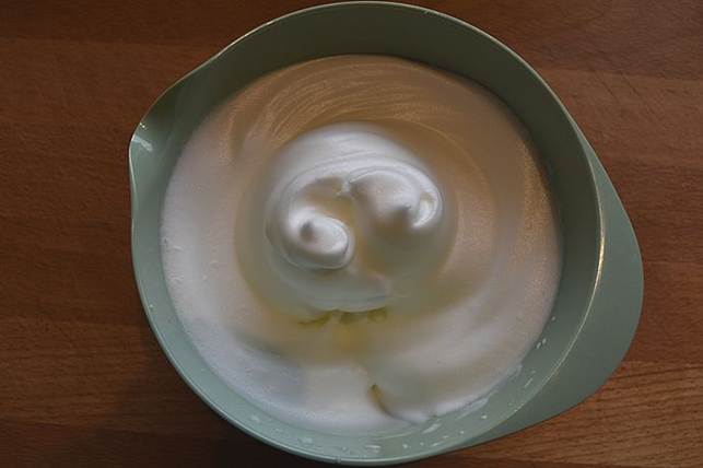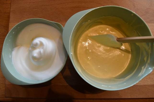 til sidst vender du de stivpiskede æggehvider i blandingen og