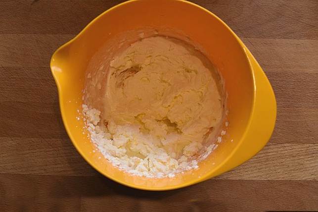 Vend flødeskummet i blandingen og rør til den er helt jævn