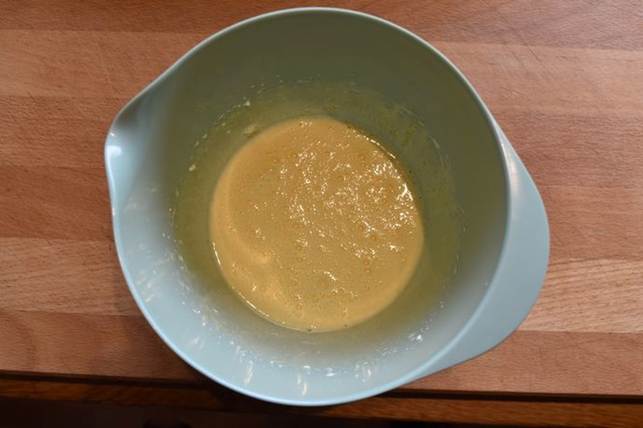 vender forsigtigt rundt til alt er jævnt fordelt og der ikke er klumper.
