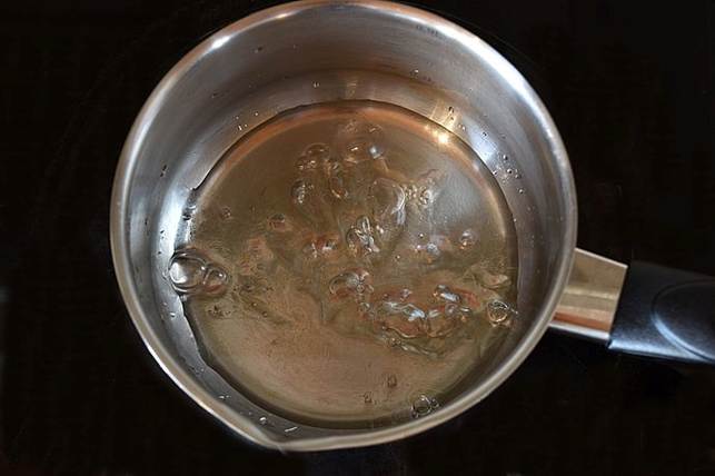 nu hænger ved, smelt den ved lav varme, den skal ikke boble.