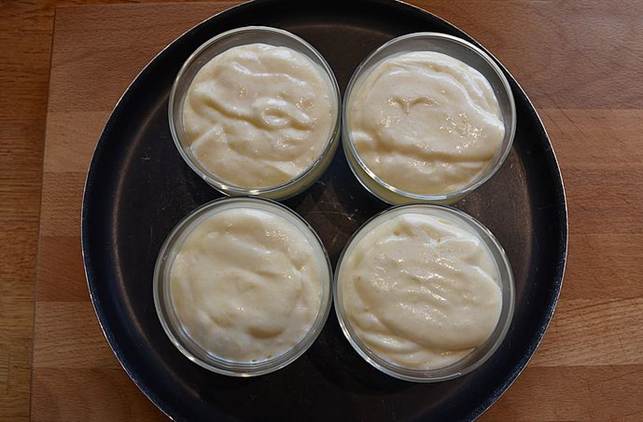 fordel fromagen i 3 – 4 portionsglas, eller brug en stor skål