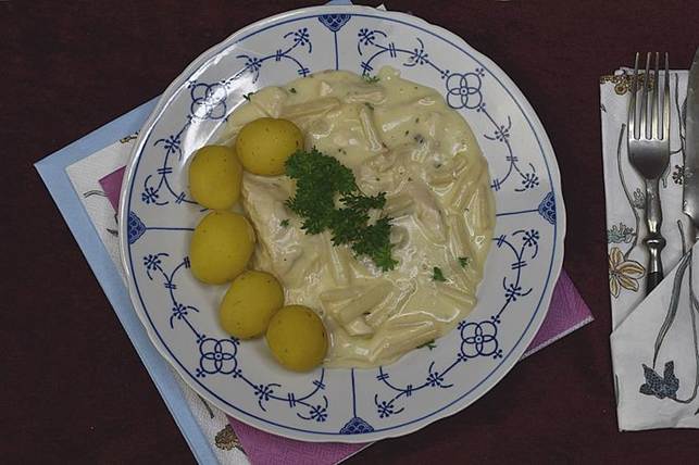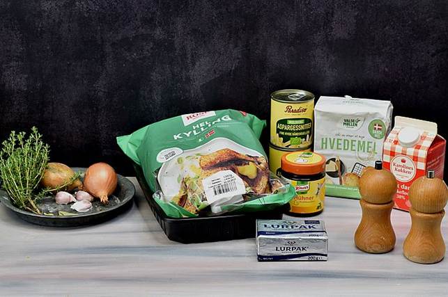 Her er en opskrift på Høns i asparges. God gammeldags mad,