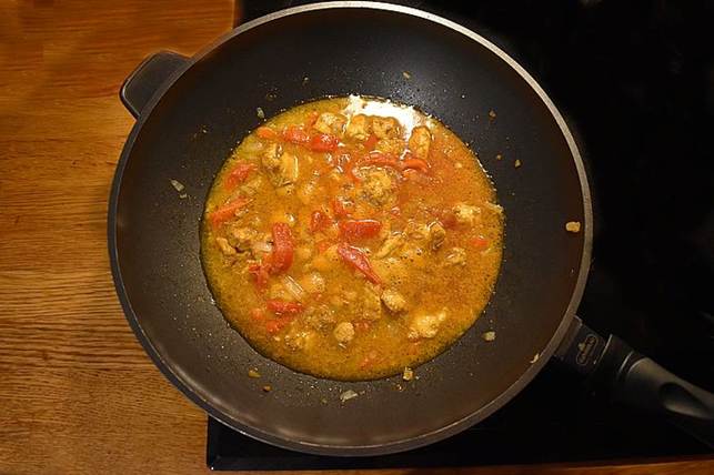 tykner, tilsæt evt. en smule vand, så retten ikke tørrer ud, krydr med