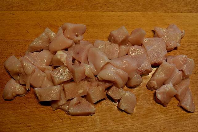 skær kyllingen i små tern og