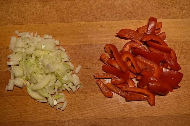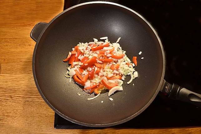 peberfrugt i ca. 5 min. Til det er gennemsigtig, men ikke har tage farve.