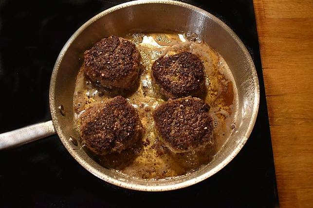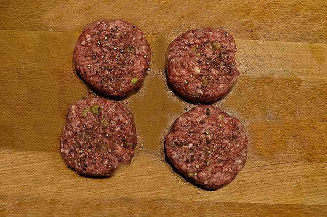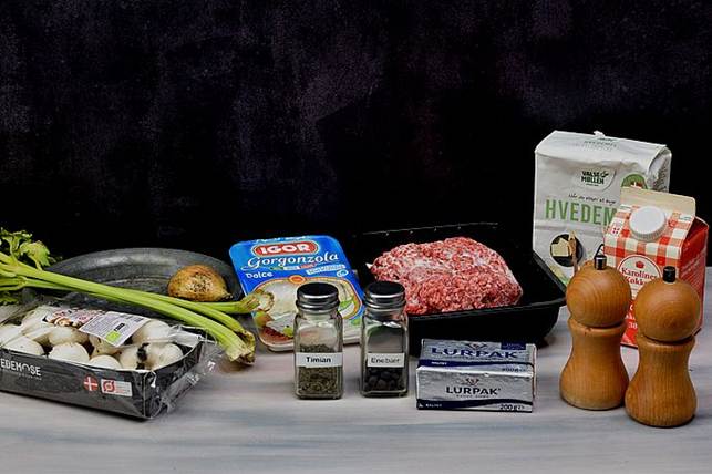 danablu, form fire store bøffer af blandingen.