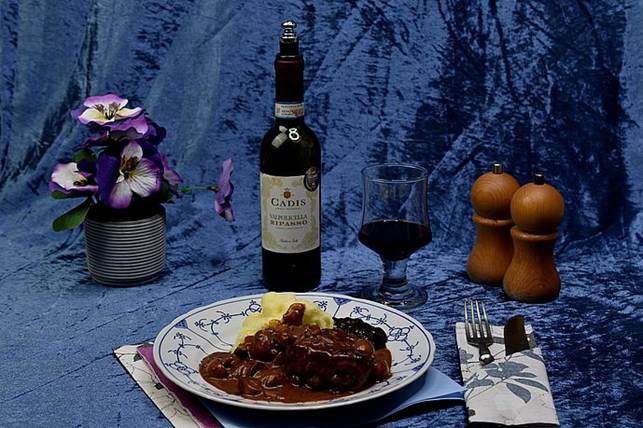 juster konsistensen med maizena udrørt i koldt vand, kulør, salt og peber.