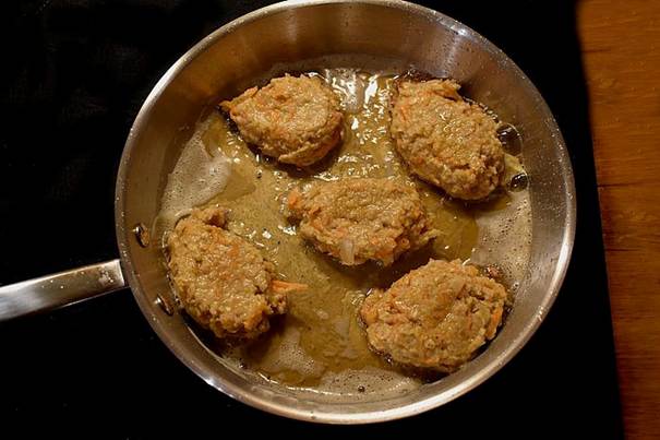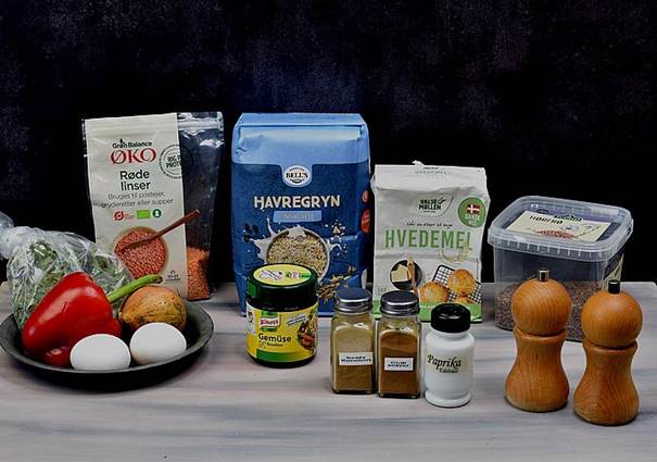 Skønne og saftige frikadeller på røde linser, havregryn, friske