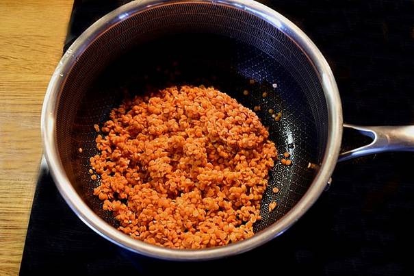 Start med at skylle linserne godt, i koldt vand, kog dem i