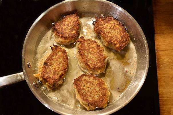 olie eller smør, indtil de er gyldne og sprøde. Læg dem