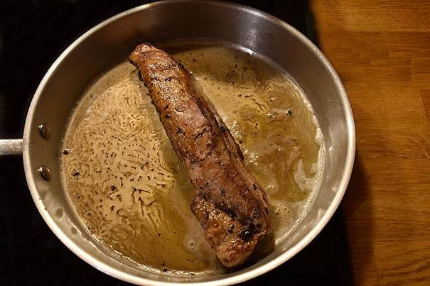 Steg mørbraden på alle sider i spsk. Olivenolie