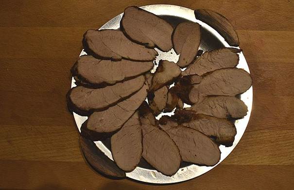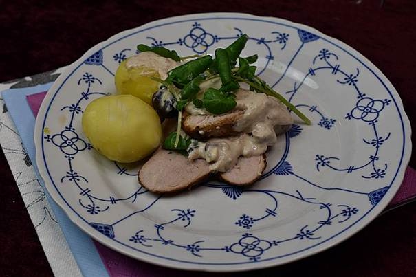 serveres den til kalvekød, her bruger vi svinemørbrad.