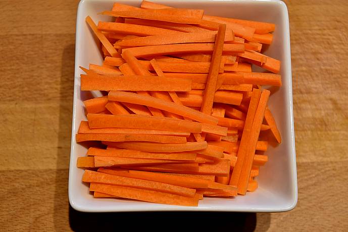 Skær gulerødder i stimler