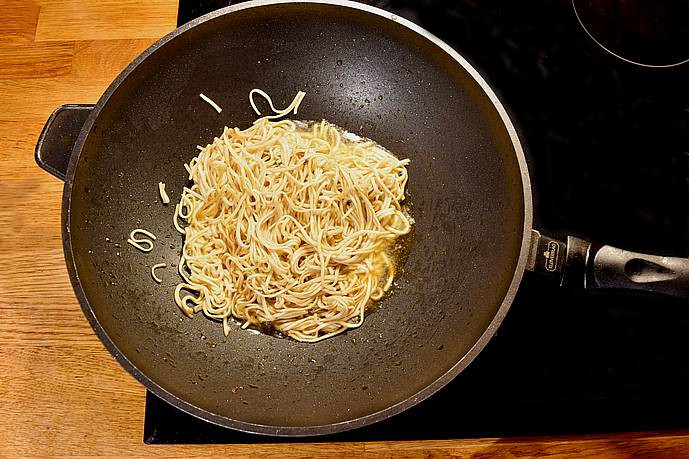 tilsæt nudlerne og steg i ca. 5 min.