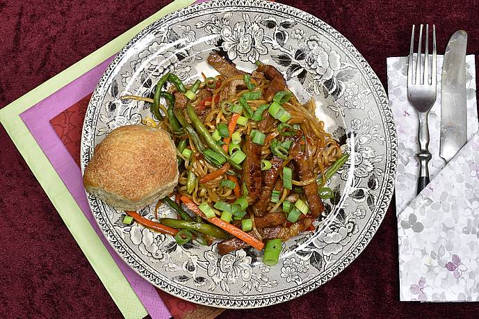 Dagens tallerken, Singaporegryde med nudler og kuvertbrød