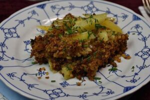 Torskerognsgratin på grovbrød med citronrytter og salat