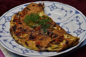 Middag/frokosttærte med spidskål, spinat, hytteost, okonomisauce og Japansk mayo